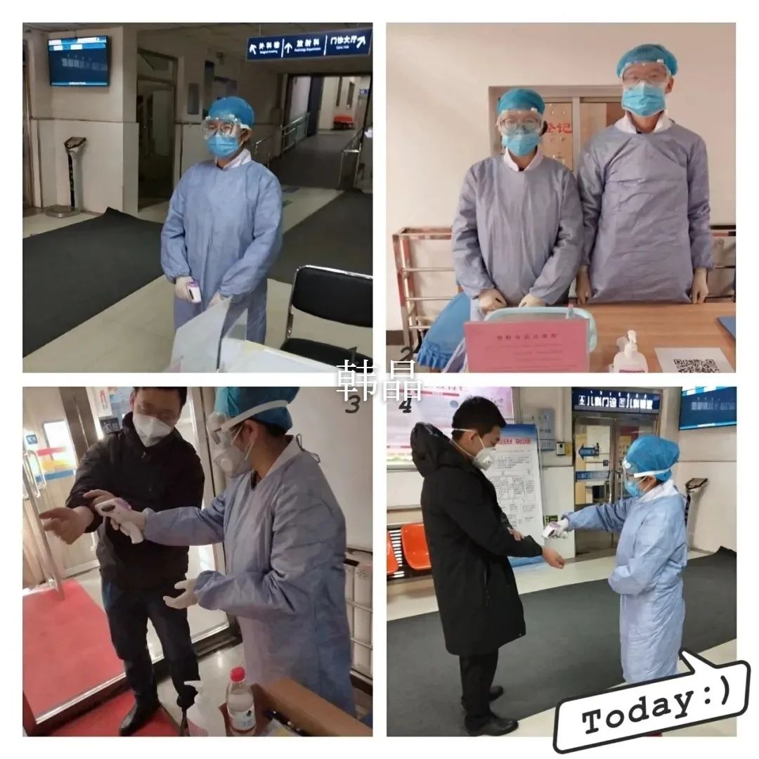 “您好,请测一下体温。请问您近期去过武汉吗?跟疫区的人有过密切接触吗?”这样重复的话语每天要说成百甚至上千遍,为每一位进入患者测量体温,询问接触史、对疑似发热患者进行分诊,每天重复着看似简单,实则高风险的繁重任务,但大家都没有怨言,保质保量完成每天的工作。