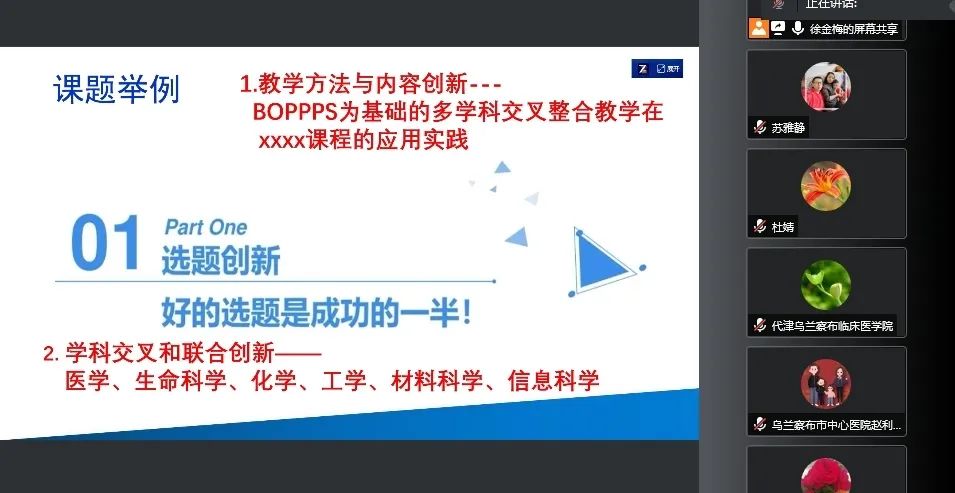 我院教学改革项目立项申报和在研的老师及各临床教研室骨干30余人参加线下培训,同时邀请各临床医学院教学改革工作负责人和相关人员参加线上培训。参会教师就本次培训、教学改革具体工作及前期2022年内蒙古自治区高等教育学会高等教育研究课题立项申报中的一些问题,展开进一步的交流。