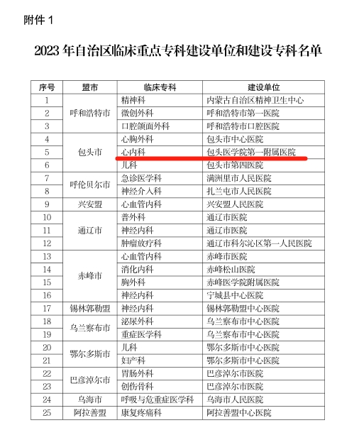 近日,我院心内科获批“2023 年自治区临床重点建设专科”。临床重点专科是医院品牌的象征,是医院核心竞争力的集中体现,心内科获批临床重点专科项目,既是对专科学术地位的充分肯定,也是推动我院专科进一步发展的重要契机。