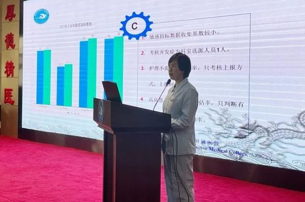 护理部主任孙雅博进行点评总结,要结合《内蒙古自治区医院等级评审标准》、《公立医院高质量发展促进行动》及医院总体工作部署,掌握临床工作中的实际问题和薄弱环节,重点突出。坚持常态化科学防控,落实关键环节管理,深化精细化管理,全面推进护理高质量发展。护理管理者要继续加强督促、指导、培训、追踪,加强科室之间的学习交流及成果共享。质量为重,安全为先,2022年要求全员参与护理质量管理,塑造积极向上的科室安全文化。