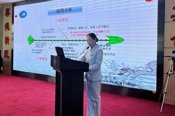 为促进护理质量控制持续改进工作更加科学化、规范化,为提高护理质控组的思维能力,更好地通过现代化质量管理工具去发现问题、解决问题,为临床提供更加科学、精准的护理质量数据和整改措施。同时为进一步落实“以健康为中心”的优质护理服务理念,实现全面、全员、全过程质量管理,建立自下而上的管理体系,形成长效管理机制,为患者提供满意安全的护理服务。2022年3月29日在包医一附院影像中心三楼学术会议厅进行了“护理质量控制持续改进创新竞赛”活动。本次大赛由护理部主任孙雅博主持,党委办公室、院长办公室、纪检室、工会、团委、宣传科等负责人参加。