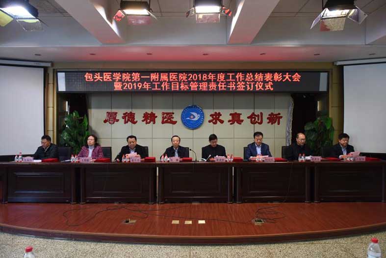 为表彰先进,充分调动全院广大干部职工工作积极性、主动性、创造性,推进2019年医院各项工作再上新台阶。2019年1月25日,我院在医学影像科三楼会议室召开了2018年度工作总结表彰大会暨2019年工作目标管理责任书签订仪式。包头医学院党委副书记张健应邀出席会议。会议由我院党委副书记、副院长董乐乐主持。