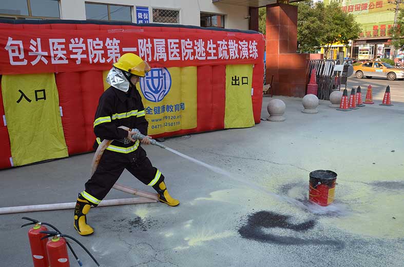 应急演练特邀中国安全健康教育网—包头站专业教员康建军讲解了有关火灾现场逃生的应急处置方案、灭火器的原理、基本操作方法及注意事项,并进行了现场演示。在认真听取讲解和观摩后,我院职工体验了现场灭火及逃生过程。面对熊熊燃烧的火堆、浓烟滚滚的帐篷,我院职工表现积极勇敢,按照灭火、逃生的步骤和方法将大火迅速扑灭,并在逃生帐篷里迅速逃离。