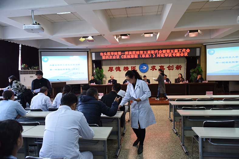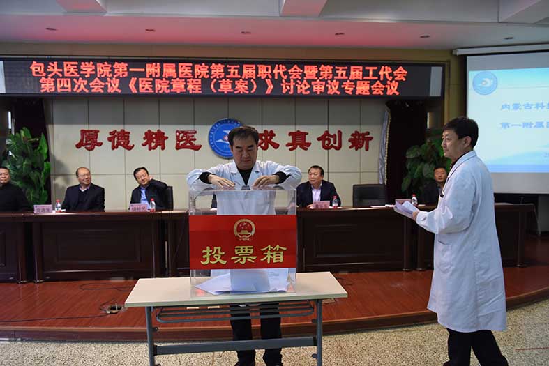 通过医院纪委的全程监督,经过与会代表填写表决及征集意见表投票表决,《包头医学院第一附属医院章程(草案)》全票通过。