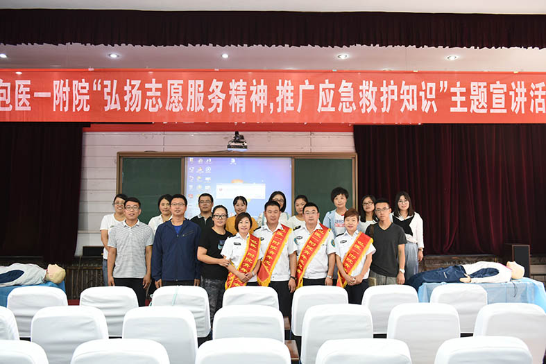 为深入推进“两学一做”学习教育,强化校园应急救护安全知识普及,2017年8月29日,我院组织急诊医学科护理工作者会同党委办公室志愿者一行6人走进包头市东河区铁路一中开展以“弘扬志愿服务精神,推广应急救护知识”为主题的志愿宣讲活动。全校教职工近150人参加此次活动。