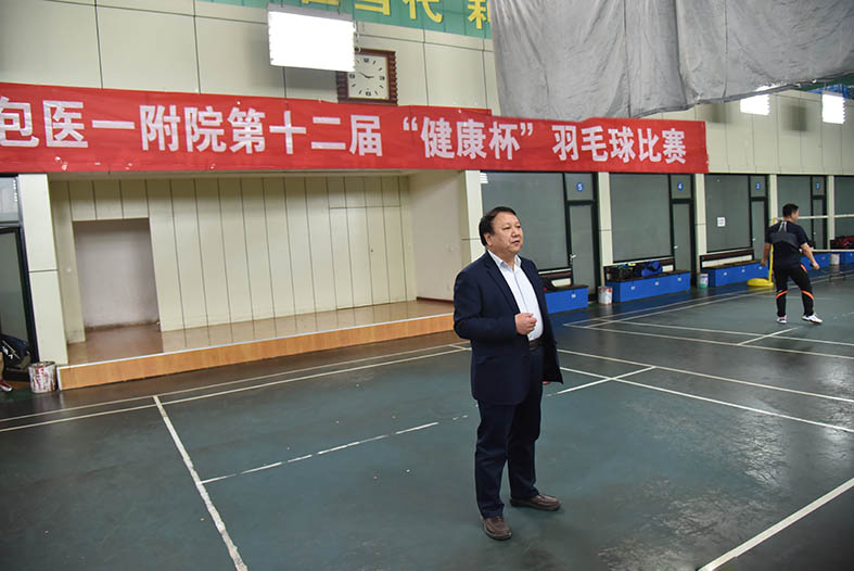 我院党委副书记、副院长董乐乐出席比赛开幕式。他指出,近年来,在医院党政的大力支持下,我院“健康杯”羽毛球赛已经连续举办了12年。 在全院举办羽毛球比赛,就是要在我们医疗护理队伍中牢固树立“健康生活、快乐工作”的理念,让强健的体魄成为我们更好工作的有力保障。他强调,全体参赛选手要充分展示“团结友爱、奋勇拼搏”的精神,赛出成绩,赛出水平,赛出道德风尚,宣传好、树立好包医一附院的良好形象,齐心协力把本届赛事办成一次和谐、团结、奋进、创新的比赛。