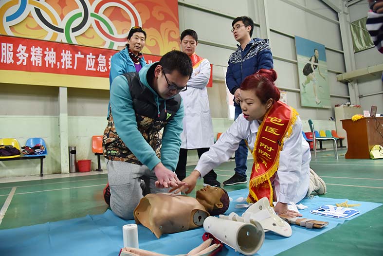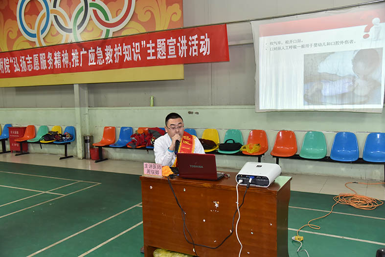 为向市民普及医疗急救知识,进一步提高广大市民在突发状况下救人与自救的能力,2016年12月17日,我院组织自治区青年文明号急诊医学科医护人员及相关科室青年志愿者赴华乐职工活动中心开展以“弘扬志愿服务精神,推广应急救护知识”为主题的“生命之星”普及应急救护知识志愿服务项目宣讲活动。