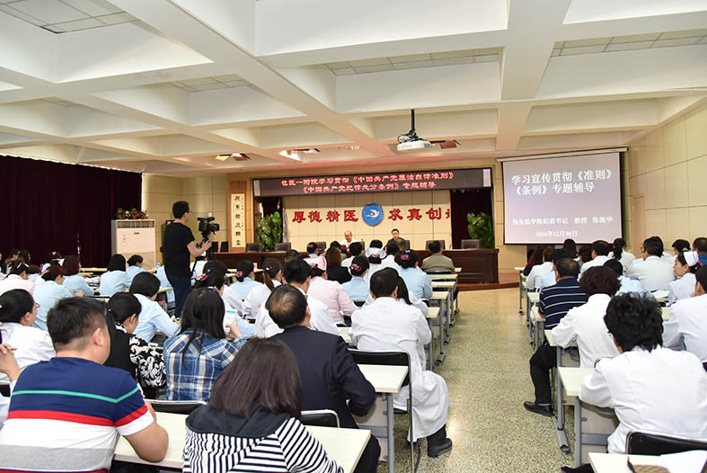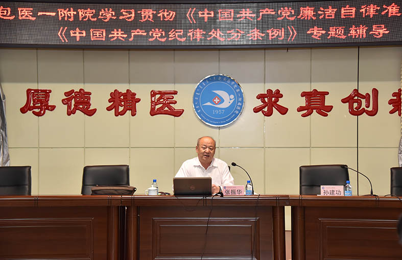 4月14日,我院在医学影像科三楼会议室举办《中国共产党廉洁自律准则》、《中国共产党纪律处分条例》专题学习辅导,包头医学院纪委书记张振华教授应邀进行了专题辅导。我院领导班子成员、各科室主任、护士长、各党支部书记、支部委员及党员代表近300人参加了专题辅导。