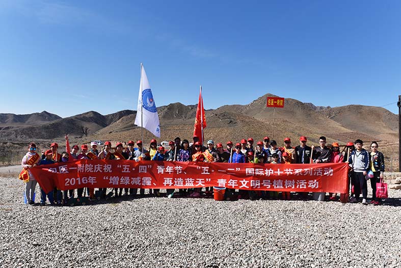 为深入贯彻党的十八届五中全会精神,牢固树立创新、协调、绿色、开放、共享的发展理念,积极落实团中央开展京津冀晋蒙青少年增绿减霾共同行动的要求,在“5·4”青年节和“5·12”国际护士节来临之际,我院组织青年志愿者来到包头市新世纪青年生态园参加了由团市委号召发起的“增绿减霾、再造蓝天”青年文明号春季植树活动。2016年4月23日,来自党委办公室、院长办公室、医保管理科、计算机网络管理科、计划财务科、药剂科、急诊医学科、肾内科、骨科二病区、骨科四病区、蒙医骨伤科、儿科、放射科、注射室等15个科室和青年文明号集体近50名党员、团员及志愿者参加了此次活动。