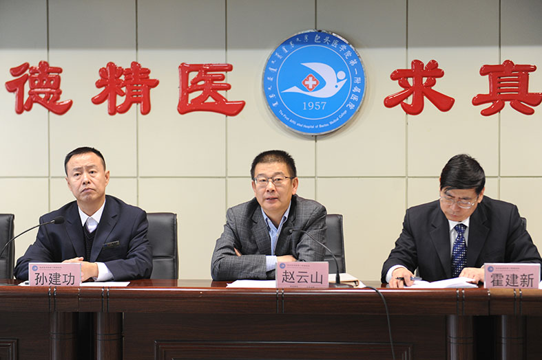 包头医学院党委副书记、院长赵云山在讲话中对受表彰的集体和个人表示祝贺,并向全院广大干部职工、离退休职工及家属致以亲切的慰问和崇高的敬意。他表示,通过一年来对一附院多次调研和霍建新院长的工作回顾,全面了解了一附院取得的可喜成绩。他希望全院干部职工能够牢固树立学校与医院密切结合,唇齿相依的观念。他要求,全院医护人员积极参与到医院“十三五”规划的编制工作中,认真对待,拓宽思路。同时,赵云山院长从医教研、学科建设、党建及精神文明建设、文化建设、包医国际医院筹建、医院本部改扩建和针对大型医院巡查、等级医院评审中存在的问题不足进行整改等方面提出了殷切期望。他强调,一附院广大干部职工要牢固树立“有付出就会有收获”的观念,在上级党委行政的正确领导下,圆满完成2016年各项工作任务,实现“十三五”良好开局。