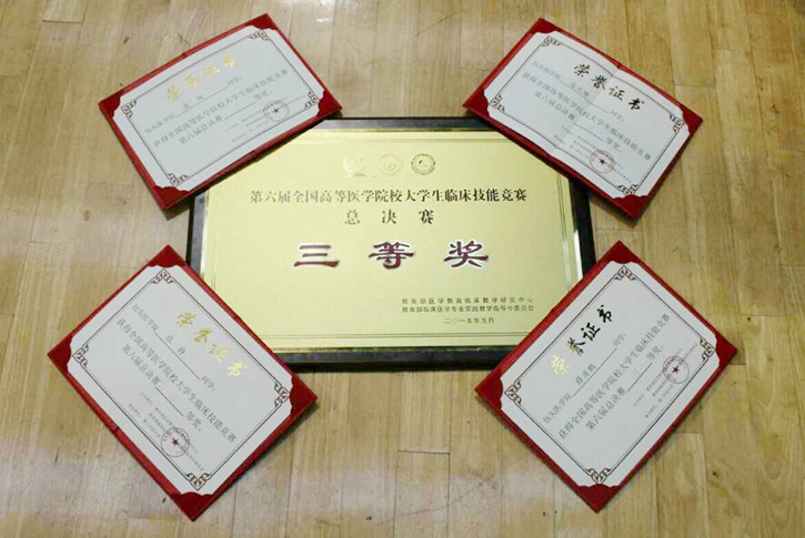 包头医学院代表队由2010级五年制临床本科的薛历鹏、张静、寇正雄和孟闯4位同学组成,他们不畏强手、全力以赴、团结协作、密切配合、与来自全国各地的众多优秀选手同台竞技,在激烈的角逐中稳定发挥,以优异成绩获得全国总决赛三等奖,向评委和观赛专家们充分展现了我校学生扎实的技能功底。
