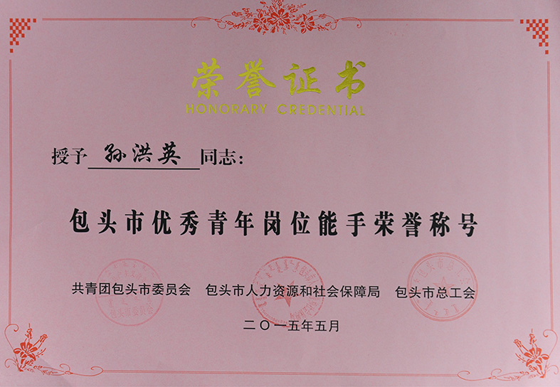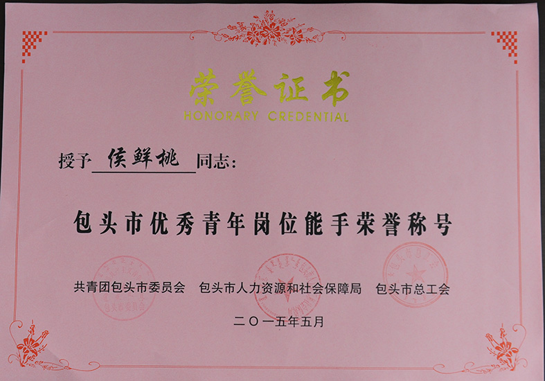 为表彰先进、树立典型,动员和激励更多的青年立足岗位、成长成才,掌握新技能、创造新业绩,引导青年职工注重安全生产技能,参与安全生产管理,在分别由共青团包头市委员会、包头市人力资源和社会保障局、包头市总工会和共青团包头市委员会、包头市安全生产监督管理局共同主办的“包头市优秀青年岗位能手”和“包头市青年安全生产示范岗”评选活动中,我院神经内二科主任医师、硕士研究生导师孙洪英,肾内科主管护理师侯鲜桃凭借良好的职业道德、精湛的职业技能荣获“2014年度包头市优秀青年岗位能手”荣誉称号。我院国家临床药物试验基地、自治区重点学科、自治区自体免疫学重点实验室风湿免疫科凭借较强的安全生产意识、完善的安全生产措施,构筑起青年安全生产的坚强防线,在安全生产中发挥示范带头作用,科室被共青团包头市委员会、包头市安全生产监督管理局评为“2014年度包头市青年安全生产示范岗”。