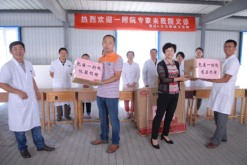 2015年9月9日,包医一附院应市政府、市卫计委的号召,在院领导及医务科的带领下由蒙医骨伤科、中医科、骨科、普外科、心内科组成的专家团队前往昆区卜尔汉图镇卫生院对“少数民族地区联系帮扶活动”及蒙中医“进乡村、进社区、进家庭”以及“健康包头行”大型义诊活动。本次活动秉承服务百姓、扶贫济困的宗旨遍及昆区卜尔汉图镇等自然村,村子缺医少药,更多的人口是留守老人和儿童,我院专家细心问诊,病情严重的患者给出治疗意见,并邀请来我院进行进一步治疗。此次义诊活动我院向卜尔汉图镇卫生院捐赠了心电图机、轮椅、药品共计20000余元,发放宣传材料500余份。