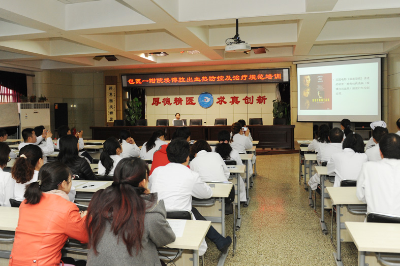 为加强对埃博拉出血热的防控工作,作为包头市埃博拉出血热定点防治医院,2014年11月5日,我院举办了埃博拉出血热防控及治疗规范专题讲座。