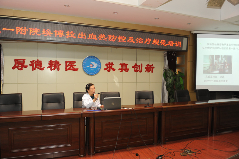 我院感染疾病科主任林爱清围绕2014年埃博拉出血热疫情概况、埃博拉出血热的国际应对以及埃博拉出血热传入我国的风险和防控建议等做了介绍,并针对传染源、传播途径、易感人群和诊疗方案进行了细致讲解。