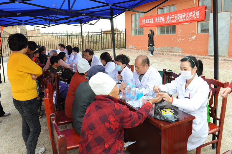 值此重阳节到来之际,为积极响应包头医学院党委深入开展党的群众路线教育实践活动的号召,结合医院“健康包头行动”活动安排,2013年10月12日,我院组织神经内科、心内科、呼吸内科、儿科、中医科、骨科、妇产科、皮肤科、物理诊断科专家和党政办公室、团委、医务科、宣传科志愿者一行17人,在包头医学院党委书记王万义,组织部副部长、纪检委负责人任忠和,包医一附院党委副书记、院长霍建新,党委书记孙建功的带领下,再次走进包头市土右旗将军尧镇仁义昌村开展“关爱百姓健康,走进农村社区”医疗专家义诊活动。