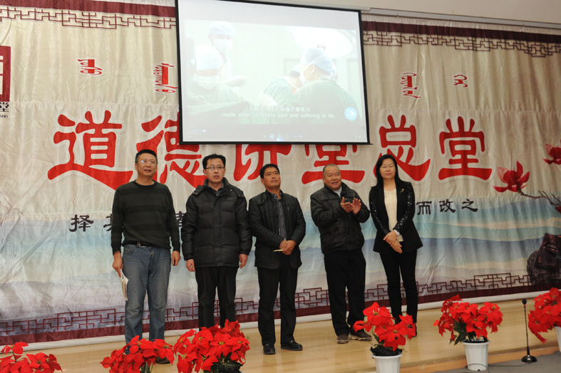 本期道德讲堂以“敬业奉献”为主题,通过省自身、唱歌曲、看短片、崇德礼、诵经典、作点评、一堂一善事等9个环节弘扬爱岗敬业、无私奉献的优秀品德,营造崇德向善的和谐氛围。此次道德讲堂讲故事环节中,讲述了我院肾内科主任王彩丽的先进事迹,她为患者甘之如饴、真诚无私的奉献精神感染了在场每位观众。一堂一善事环节中,王云海科长代表医院全体干部职工向我市十位道德模范捐赠体检卡,祝福道德模范好人一生平安,同时也以模范的力量带动身边人但行好事,莫问前程。