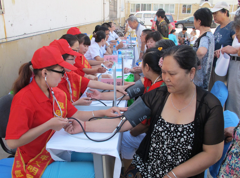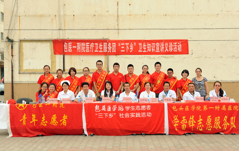 为了提高居民身体素质,增强居民自我保健意识,丰富居民对常见疾病的自我预防知识的了解,根据包头医学院2013年大学生暑期“三下乡”社会实践活动安排,我院于2013年8月7日—9日共组织中医科、消化内科、神经内二科、妇产科、介入治疗科、风湿免疫科、皮肤科、心内二科、检验科、准分子激光治疗室、蒙医骨伤科等11名医疗专家及16名两段式教学学生组成医疗卫生服务团赴结对社区明日星城知书苑开展“三下乡”卫生知识宣讲及义诊活动。