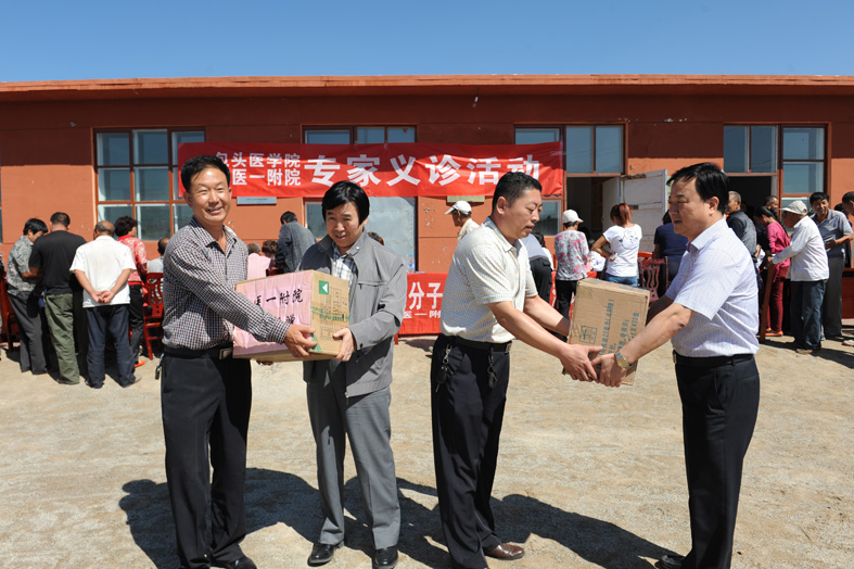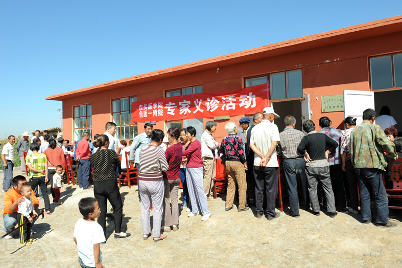 2013年9月5日,我院积极响应包头医学院党委号召,组织神经内科、心内科、呼吸内科、儿科、中医科、普外科、骨科、妇产科、皮肤科、物理诊断科专家和党政办公室、团委、医务科、宣传科志愿者一行26人,在包头医学院党委副书记郭春林,包头医学院组织部副部长、纪检委负责人任忠和,包医一附院副院长杨裕民的带领下,走进包头市土右旗将军尧镇仁义昌村,为当地群众提供便捷的医疗卫生服务,以深化党的群众路线教育实践活动,不断拓宽便民利民服务渠道,帮助医院更好地改进工作作风,提高优质服务能力。