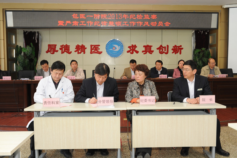 会上,我院纪委书记、副院长郑玉云同志对我院开展严肃工作纪律整顿工作作风活动进行了部署,下发了《包医一附院关于开展严肃工作纪律整顿工作作风专项活动工作方案》,签订《包医一附院2013年党风廉政建设纠风工作责任书》。