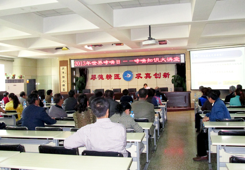 为了让人们加强对哮喘病现状的了解,增强患者及公众对哮喘的防治和管理,按照医院学雷锋志愿服务活动安排,结合第十五个“世界哮喘日”主题,2013年5月11日上午,我院自治区青年文明号呼吸内科举办了“哮喘知识大讲堂”健康讲座及义诊活动。活动中,第四届“内蒙古青年五四奖章”获得者,我院呼吸内科主任何慧洁做了“哮喘是能够控制的”主题讲座,并针对患者及家属在哮喘病防治过程中遇到的问题作了耐心细致的解答和指导。
