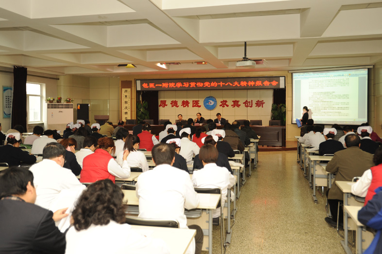 2012年12月14日,包医一附院学习贯彻党的十八大精神报告会在影像中心三楼会议室隆重召开。包头市讲师团团长、包头市党的十八大精神宣讲团成员任志刚同志及包头师范学院教授张伟同志在大会上作了精彩报告。我院领导班子成员、科主任、护士长及党员代表共同聆听报告。党委书记孙建功主持会议。