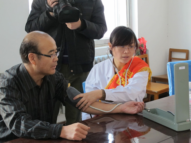 捐赠仪式结束后,我院医务人员为固阳三中的近100名教师进行了测量血压、血糖以及心电图监测等常规健康体检工作。