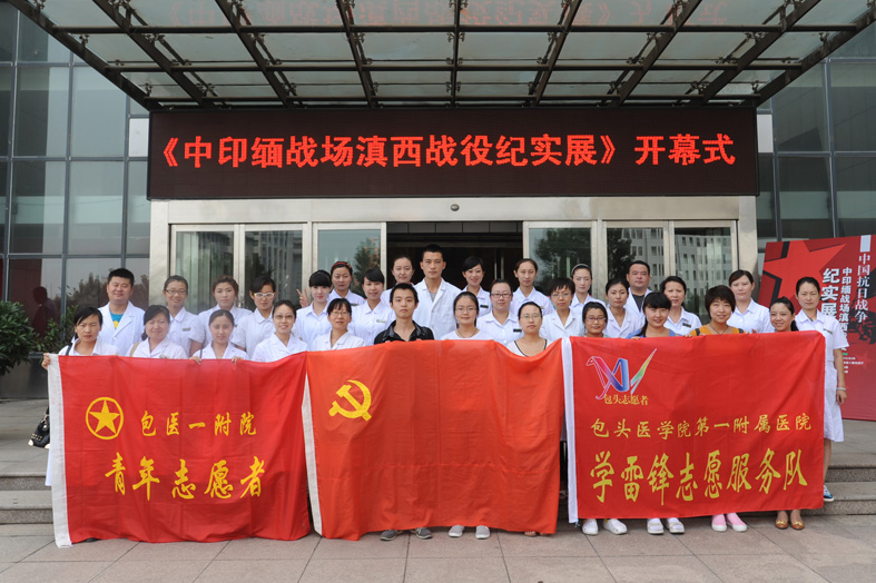 为纪念世界反法西斯战争和中国抗日战争胜利67周年,加强对党团员的爱国主义教育,深入开展社会主义荣辱观教育活动,教育党员、团员继承民族优秀历史文化传统和革命传统,增强爱国主义热情,结合文明单位创建要求,2012年7月17日上午,我院组织35名党员、团员来到包头市爱国主义教育基地——包头市博物馆,参加《中国抗日战争中印缅战场滇西战役纪实展》开幕式并进行参观。