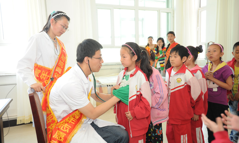 为庆祝第63个国际“六·一”儿童节,帮助儿童健康成长,让更多的少年儿童了解健康卫生常识,积极营造关爱儿童的良好氛围,结合我院“为民服务创先争优”、“团旗飘扬九十载、青春建功十二五”、“学雷锋”和“健康包头行动”等系列活动,2012年5月30日,我院联合包头医学院团委、固阳县团委在固阳县清海希望小学开展了“爱心一帮一,大手拉小手”爱心结对暨“关爱儿童,呵护健康”宣教义诊活动。