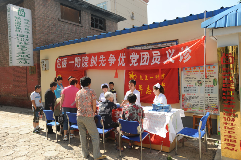 为大力弘扬雷锋及志愿服务精神,结合医院开展“为民服务创先争优”活动安排,2012年6月30日上午,我院党政办公室、团委会同门诊部及针灸康复科,组织共8名志愿者深入包头市昆区团结大街12号街坊开展创先争优党团员义诊活动。