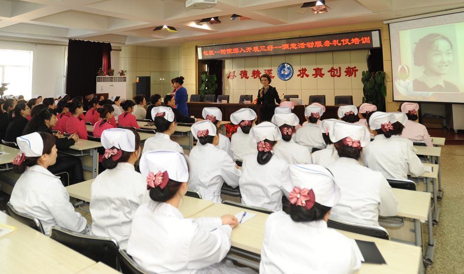 2012年3月12日下午,党委副书记、副院长董乐乐主持开班仪式。院长霍建新在讲话中指出,医护礼仪是建立在公共礼仪基础上的特殊礼仪,是一种职业礼仪,它是医院文化建设中不可缺少的重要组成部分,它对密切医患关系,提高医疗服务质量具有积极意义。他希望,广大干部职工能够仔细听,认真学,将学到的知识运用到生活和工作中,从而进一步塑造良好的医务工作者的职业形象,更好地开展“三好一满意”活动,建设科学文明、人道和谐的现代化服务型医院。