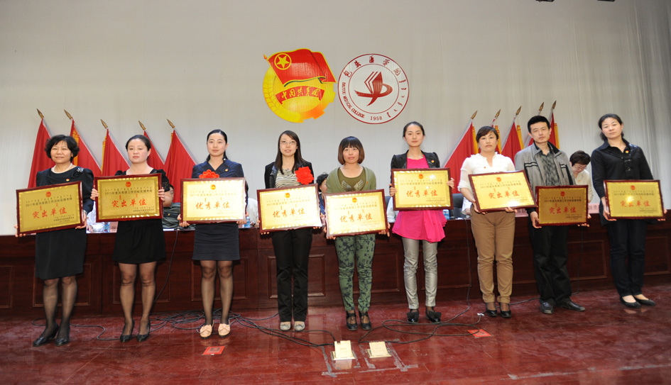 近日,在包头市各族各界青年纪念建团九十周年暨表彰大会和包头医学院各族青年庆祝建团90周年、五四运动93周年暨表彰大会上,我院团委荣获2011年度全市五四红旗团委及包头医学院2011学年度共青团工作实绩目标考核优秀单位。内科系统第三团支部荣获包头医学院2010—2011学年度“先进团支部”,贾敏等12人被评为包头医学院2010—2011学年度“优秀共青团员”,张娟等4人被评为包头医学院2010—2011学年度“优秀共青团干部”,陈鹏等12人被评为包头医学院2011学年度优秀志愿者。