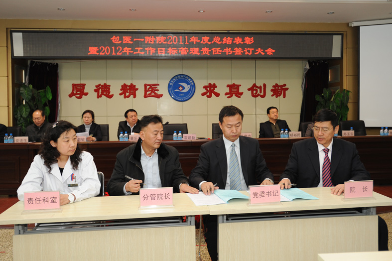 表彰会后,院领导与责任科室代表签订了2012年目标管理责任书。