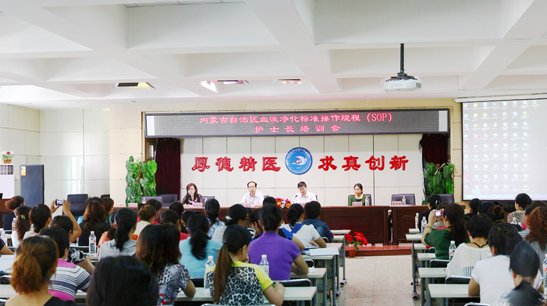 为进一步提高血液透析治疗水平,有效预防和控制经血液透析导致的医源性感染,提高医疗质量和保证医疗安全,2011年8月20日至21日,受自治区卫生厅委托,由内蒙古自治区肾脏病学专业医疗质量控制中心举办的内蒙古自治区《血液净化操作规程(2010版)》(S0P)护士长培训会在我院医学影像科三楼会议室召开。