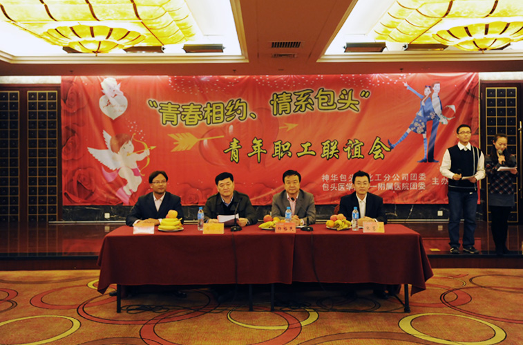 为弘扬文明新风、倡导时代风尚,增强青年职工的凝聚力,丰富青年职工的业余文化生活,营造和谐的交友氛围,搭建情感交流平台,2011年10月12日,由我院和神华包头煤化工分公司举办的“青春相约、情系包头”青年职工联谊会在神华国际酒店会议厅举行。我院副院长杨裕民、神华包头煤化工分公司党委书记胡华忠应邀出席了联谊会。来自医院及神华包头煤化工分公司的150余名青年职工参加活动。