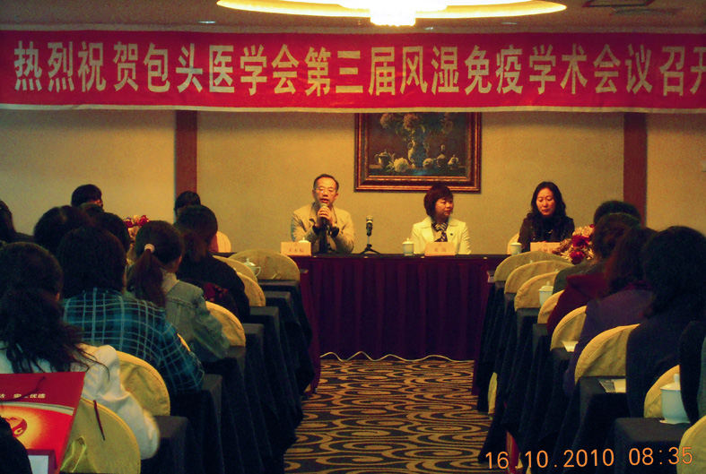 2010年10月16日,由包头市医学会主办、包医一附院承办的“包头市医学会第三届风湿免疫学术会议”在万号国际酒店隆重召开。中华风湿免疫学分会副秘书长,卫生部中日友好医院风湿免疫科主任王国春教授,中华风湿免疫学分会中青年委员会副主任委员、北京大学人民医院风湿免疫科副主任苏茵教授应邀出席了会议。会议由包头医学院科技处副处长、风湿免疫研究所副所长、包医一附院风湿免疫科主任王永福教授主持。