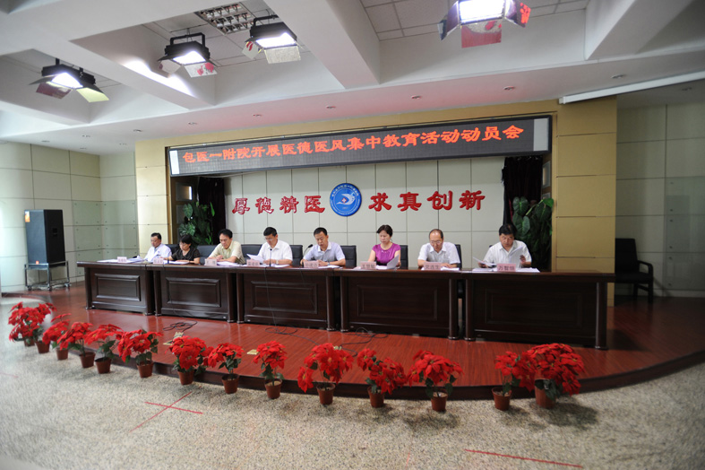党委书记孙建功宣读了《包头医学院第一附属医院关于开展医德医风集中教育活动实施方案》。方案指出,医德医风集中教育活动是以邓小平理论和“三个代表”重要思想为指导,深入贯彻落实科学发展观,是按照“标本兼治,纠建并举”的方针和正面宣传教育为主的原则而开展的,目的是进一步提高广大医务工作者的职业道德素质和行业自律意识,进一步转变服务态度,提高服务质量,构建和谐的医患关系。孙建功书记还详细布置了这次集中教育活动的范围、内容、形式及具体要求。