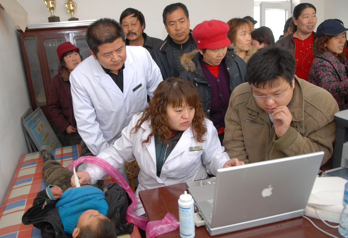 物理诊断科李明主任为贫困家庭儿童做先心病筛查