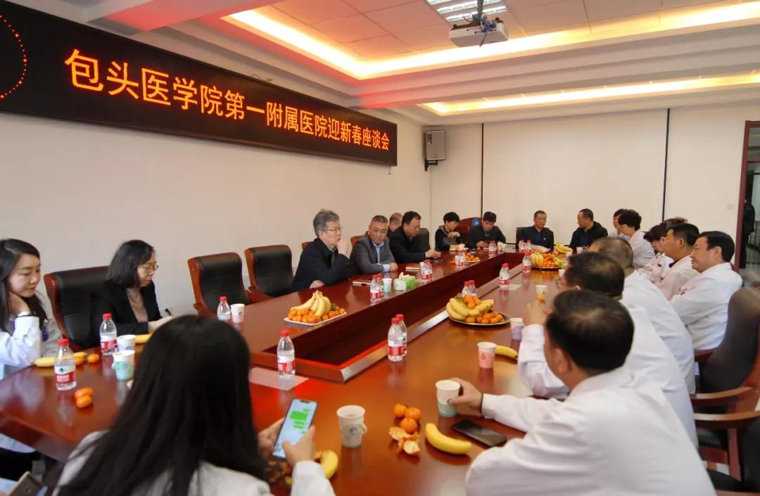 新年伊始,万象更新。2020年1月21日,包头医学院第一附属医院2020年迎新春座谈会在行政一楼会议室举行。党委书记石继海,党委副书记、院长王秋枫,党委委员、副院长杨裕民,党委委员、副院长党连生同临床、医技系统科室代表、各民主党派代表和部分行政职能科室代表欢聚一堂,畅叙友情,辞旧迎新。