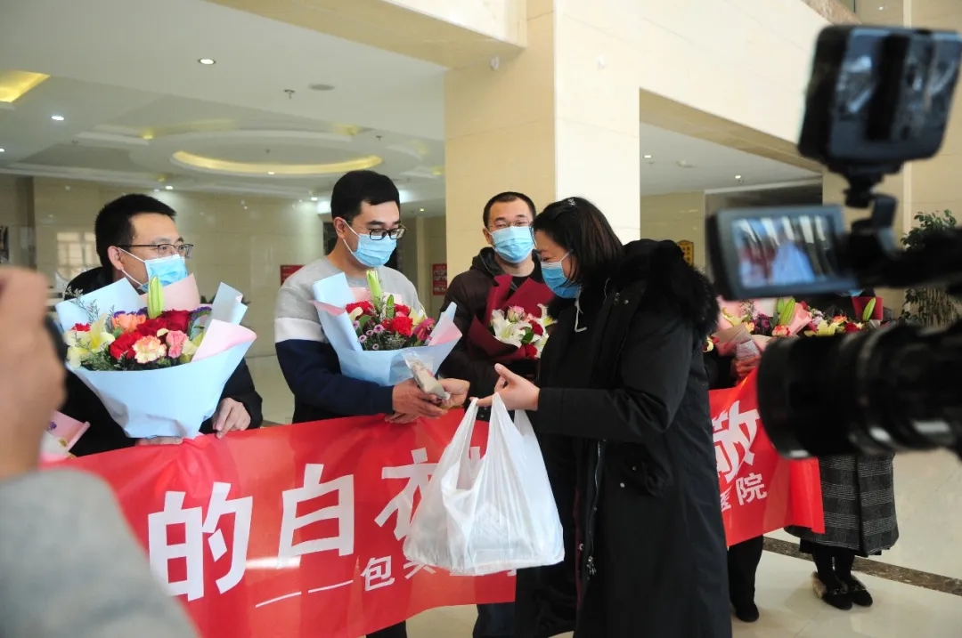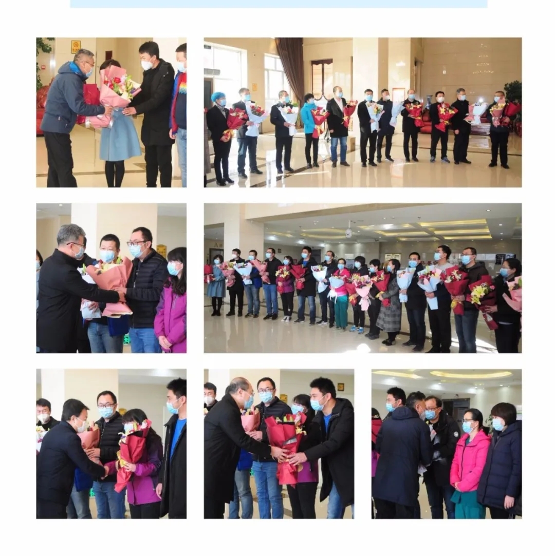 在仪式现场,党委书记石继海、党委副书记、院长王秋枫,副院长杨裕民、党连生、张春阳、万智恒,院长助理赵紫罡及党委办公室、工会、医务科、护理部等职能科室负责人依次为16名医疗队员献花致敬,同时向大家转达全院干部职工的关心和问候。