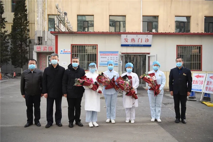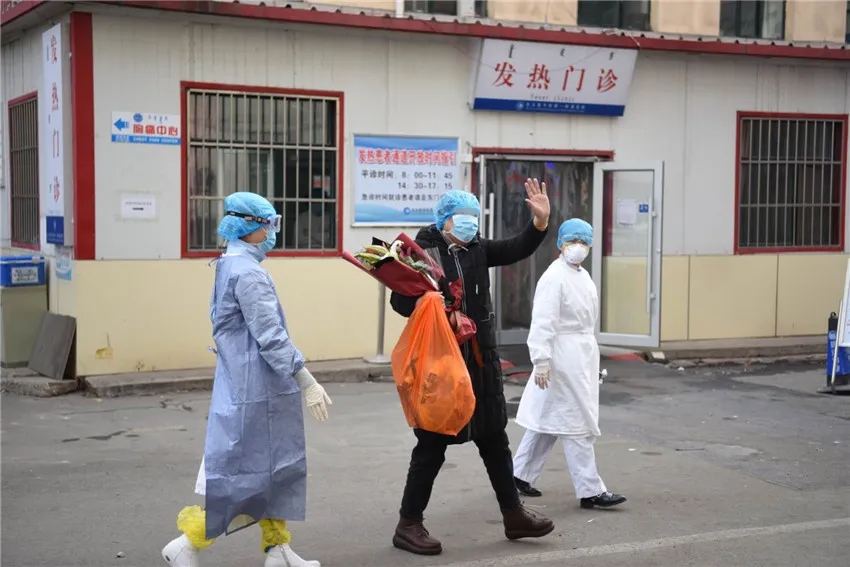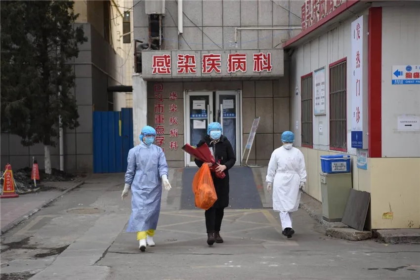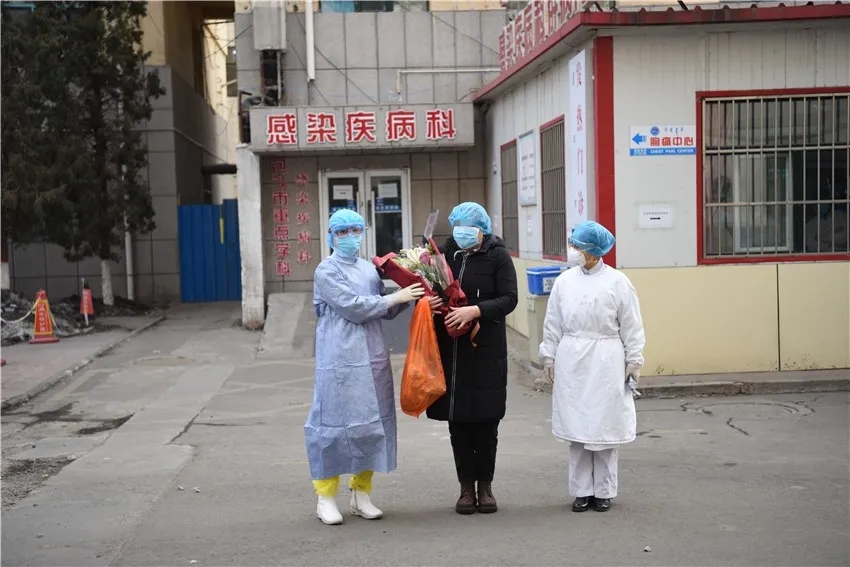 2月24日,我市第五例新冠肺炎治愈患者出院。她走出包头医学院第一附属医院隔离病房,从医护人员手中接过鲜花,激动地热泪盈眶,不停地说着谢谢。