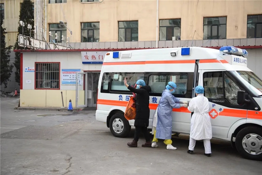 ↑ 患者对医护人员挥手告别。