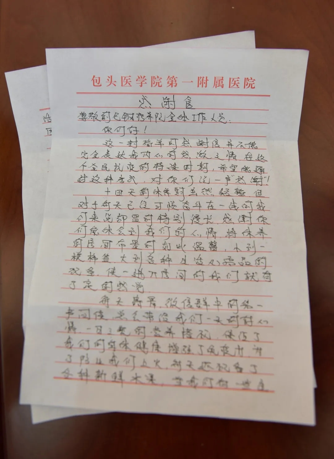 ↑感谢信。