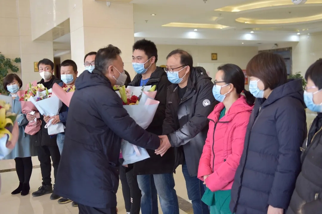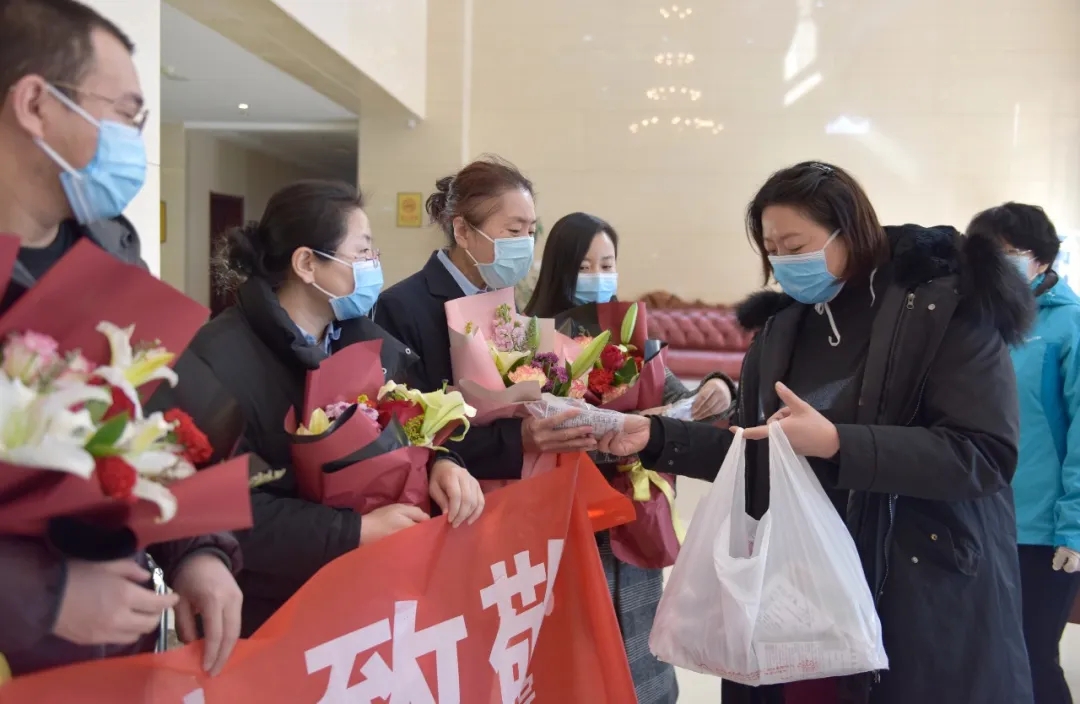 ↑为辛苦付出的医护人员送去鲜花和祝福。