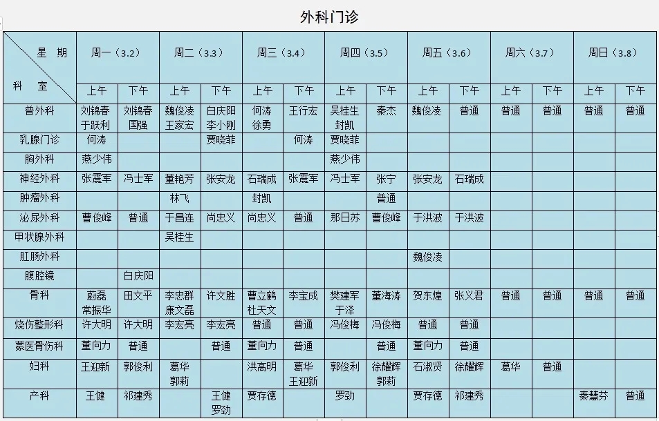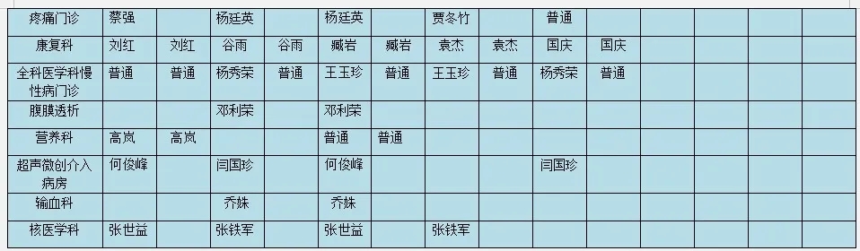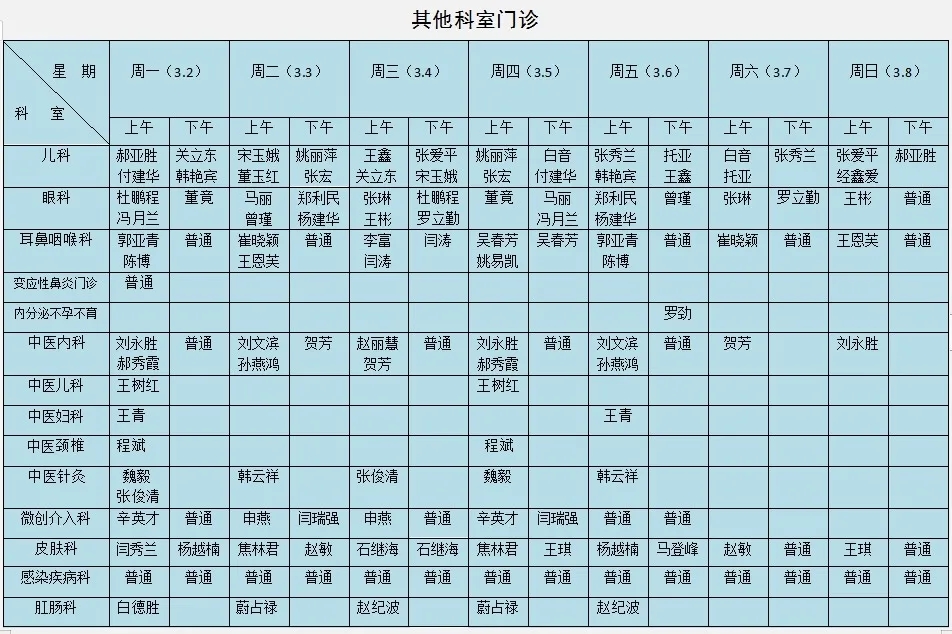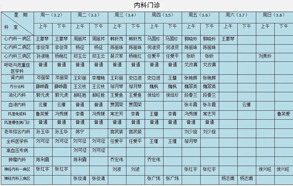 专家出诊时间表