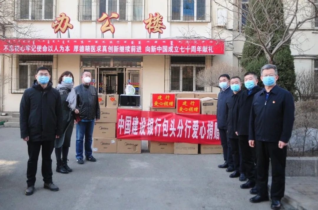 2020年3月4日下午,中国建设银行包头分行副行长王增一行来到我院,为我院捐赠了价值人民币45000元的微波炉、电热水壶等生活保障物资,并向始终坚守在抗疫前线的医务工作者致以崇高的敬意。王增副行长表示,了解到医护人员因为坚守疫情前线需要,常常是废寝忘食,不眠不休,经常不能按时吃饭。此次,向医院捐赠生活电器等后勤保障物资,就是希望能为一线医护人员后勤生活保障尽份心,出把力。