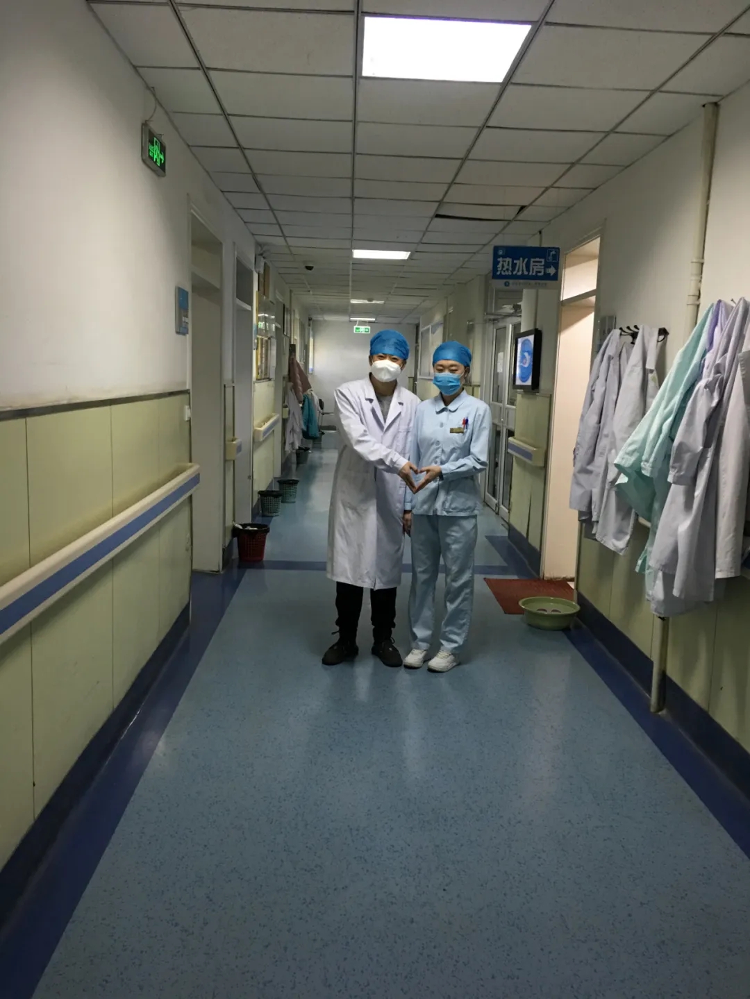 卢皓护士长常说,生活区的很多小故事也感动着她。照片里的这对小夫妻,是我院麻醉手术科护士王磊和妇科护士刘欣,他们夫妻俩就在同一天,丈夫王磊结束一线工作而妻子刘欣正式进入生活区准备开始支援一线工作,他们的“舍小家为大家”接力抗疫,着实令人感动。