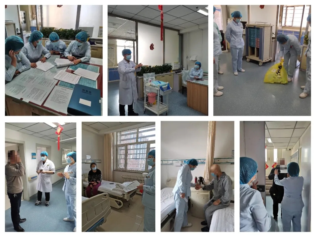 每天早晨天刚刚微亮,7点10分卢皓的身影都会准时出现在肿瘤内科,十几年如一日的提前二十分钟到岗似乎已经成为了她的一种习惯,疫情期间更不用说。同事们总打趣的问:“护士长这么早,晚上不睡啊”,她总微笑着回一句“嗯,担心你们呀”。从早会后你会看到她一直忙碌的身影,根据医院、护理部每日下发的新型冠状病毒的相关文件组织大家进行线上线下培训,担心知识点多大家记不住,她会随时提问,看看大家记的怎么样,哪些知识点容易遗漏,随时提醒。大到科室入口安装隔离门、装门铃、设立预诊室、分诊台、隔离室,小到门口的各种提示、标识,心细如丝的她都要一一过问。护士站很少看到她坐着的身影,大多时候她都会深入病房了解患者需求以及对护理工作的意见和建议。病人的口罩有没有戴,戴的正不正确,她都要亲自过目。看到口罩佩戴不规范的患者她会亲自示范正确的佩戴方法。每天检查护士、护理员、卫生员的消杀工作是否到位,预检分诊台的登记工作是否详细,这样严谨细致的她,是对所有病人的安全负责,是对所有职工的安全负责。