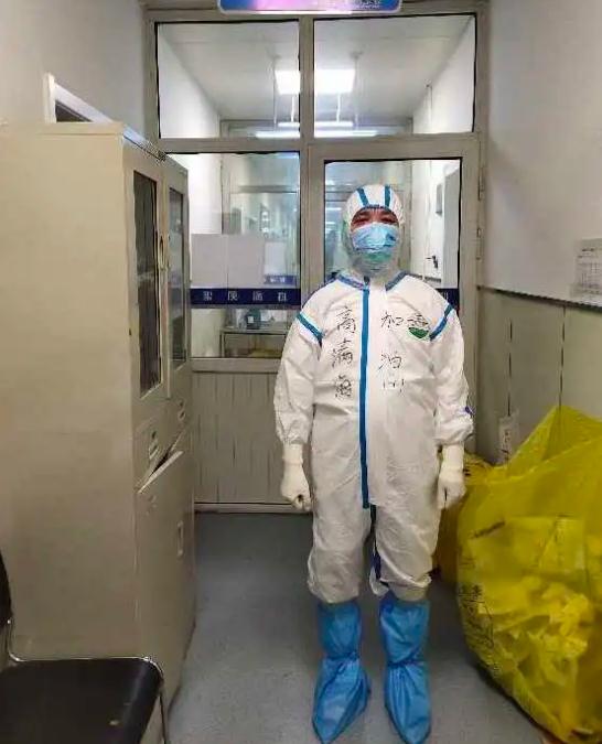 除了为患者提供专业高效的护理治疗外,逯学梅护士长最下辛苦的是绞尽脑汁同患者沟通,让患者能够敞开心扉配合治疗,以积极健康的心态和病魔斗争。在充分了解和掌握患者病情后,逯学梅贴心地为每位患者量身定制了康复功能锻炼方案,细致分解动作,一直到教会患者,患者高兴地说,“你这个教的太及时了,我每个动作做5次,全部完成后微微出汗,顿时感觉身上有劲了!”而且逯学梅还想出了在隔离服上写下“我希望看到您的笑”、“早上好”, “您好吗?”、“您想和我唠唠吗?”,慢慢地缓解了患者的恐惧和不安,这也成为隔离病房最活泼的风景线。