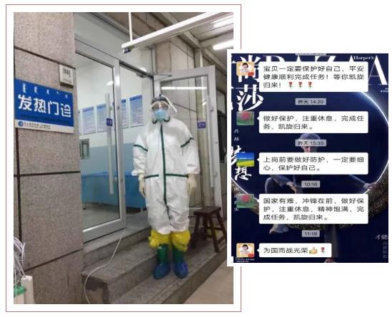 普外科一病区副主任医师王德强下了夜班顾不上休息立即前往发热门诊工作。他说:“召必来!来必战!战必胜!这是我心中一直坚定的信念。我和妻子都是咱们医院的医生,我们俩都比较忙。孩子还很小,没有时间照顾,只能将她送到姥姥家。看着孩子依依不舍的眼神,我们只能默默含泪。”